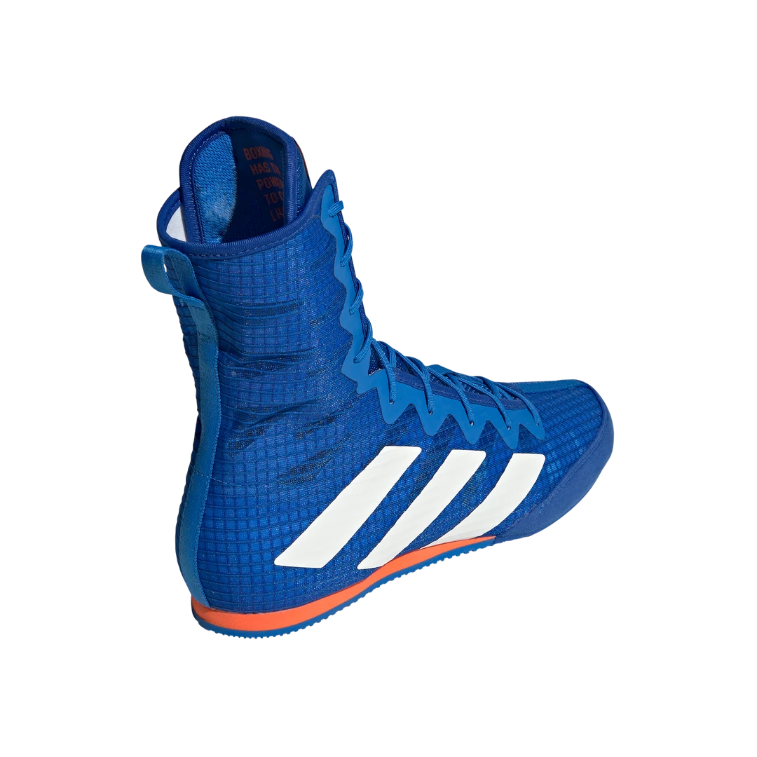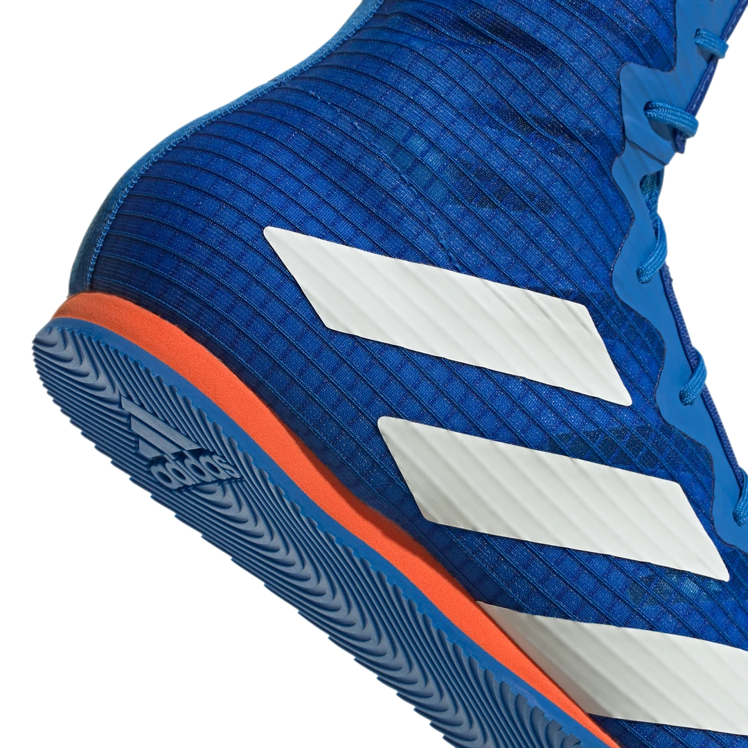 Adidas Box Hog 4 Boxing Boots – Stay light on your feet until the final bell sounds. These boxing shoes leave an impression with an eye-catching breathable mesh upper that hugs the foot for bout-winning support. Extra stability is provided by the mid-cut design and inner reinforcements. A thin EVA midsole gives you direct contact with the canvas.
