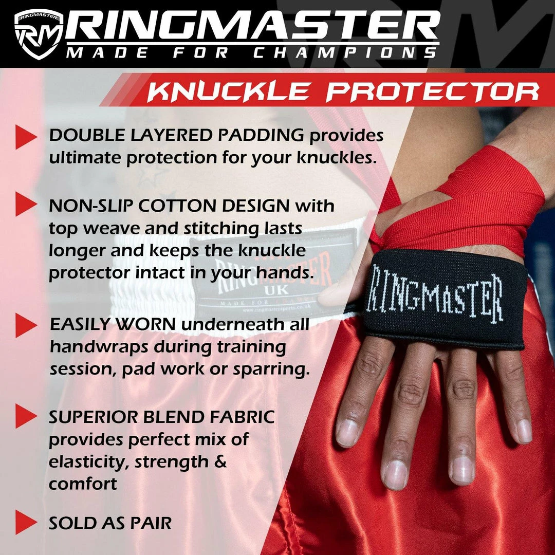 - ADVANCED KNUCKLE GUARDS: Sold as a pair the RingMaster Sports knuckle guards are designed to protect your knuckles from impacts of powerful punching. Suitable for pad work, bag work, training, and sparring in Boxing, MMA, Martial Arts, Kickboxing Muay Thai.