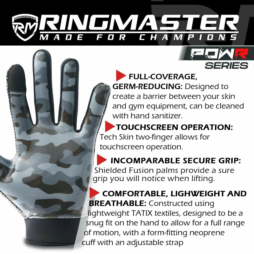 Fitness RingMaster Sports PowR Gym Training Gloves Grey Camo