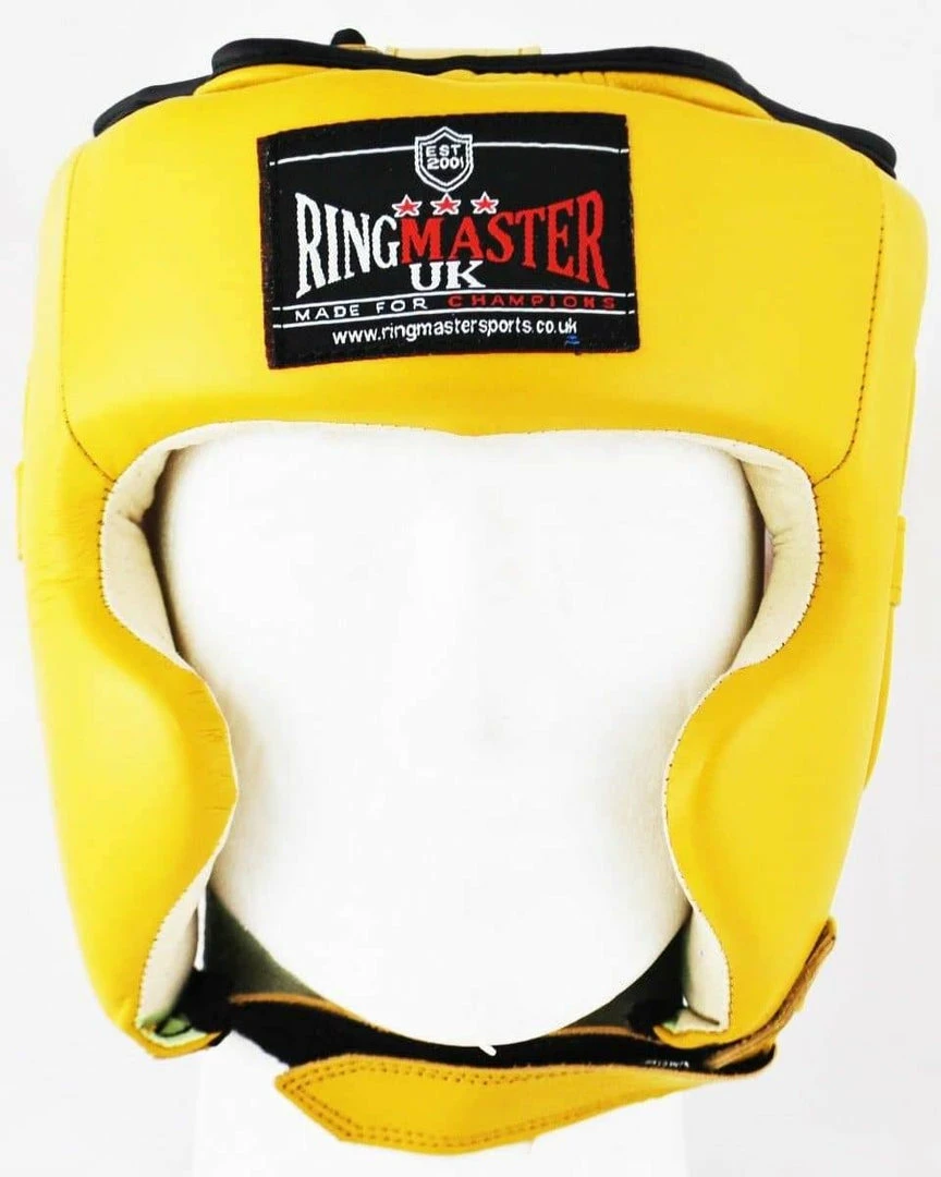The RingMaster Sports Genuine Leather full face Head Guards are constructed for high level of safety.