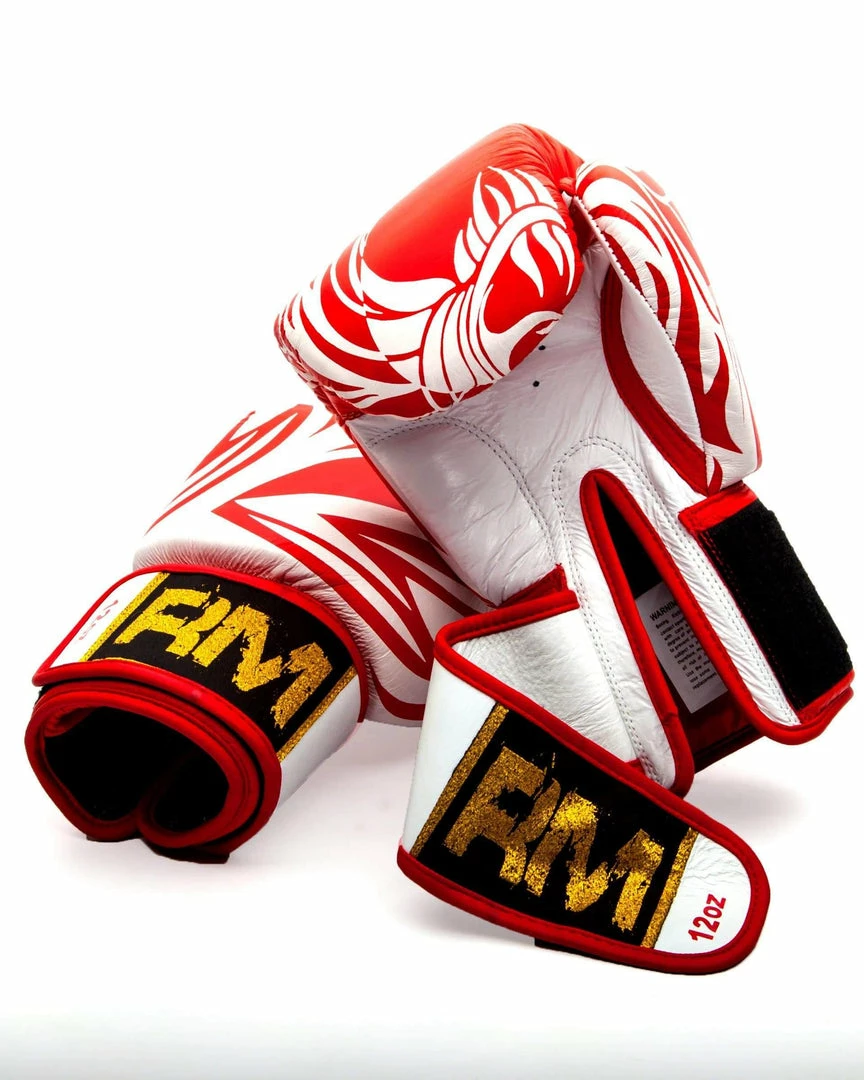 Technical Features of Genuine Leather Boxing Gloves White and Red Patterned: