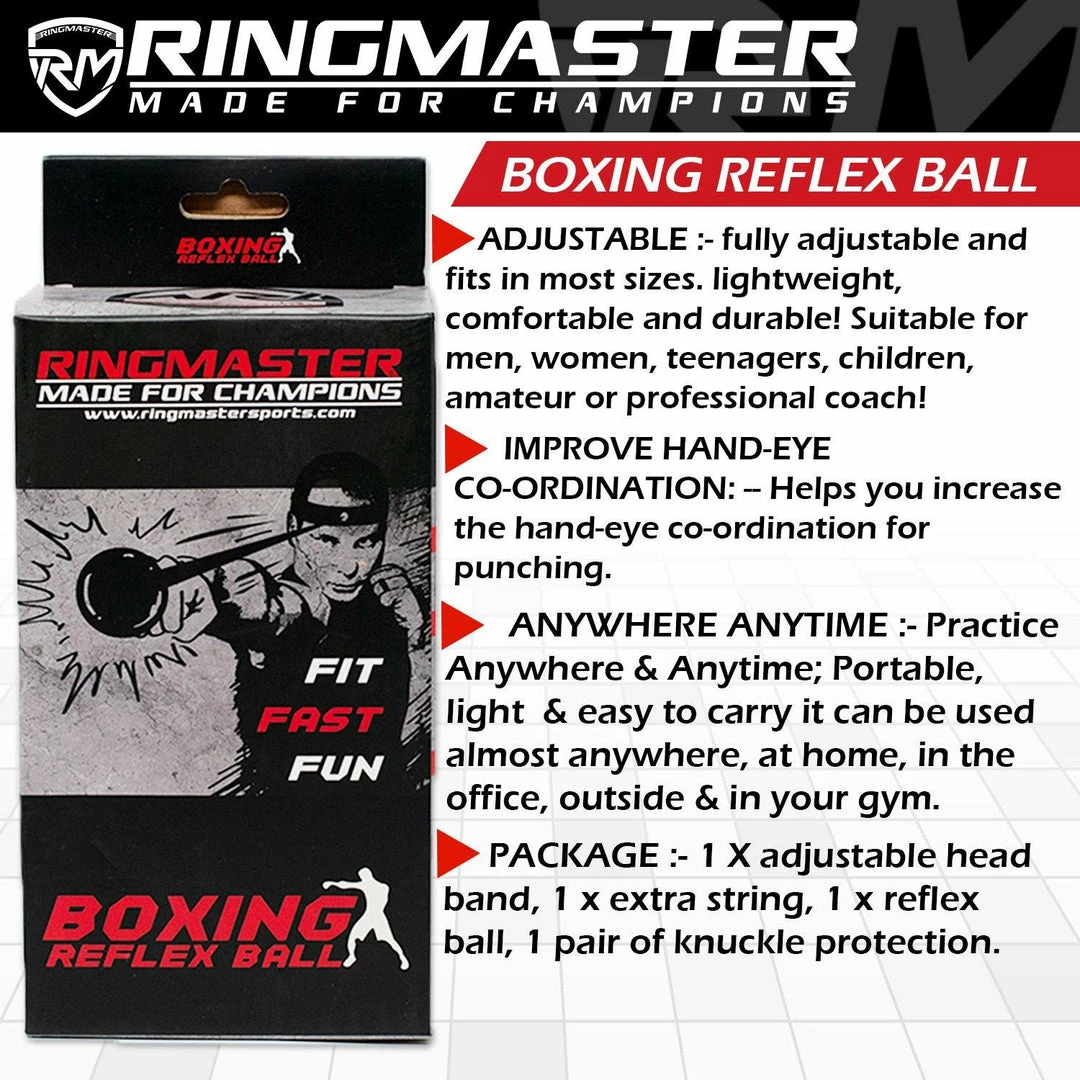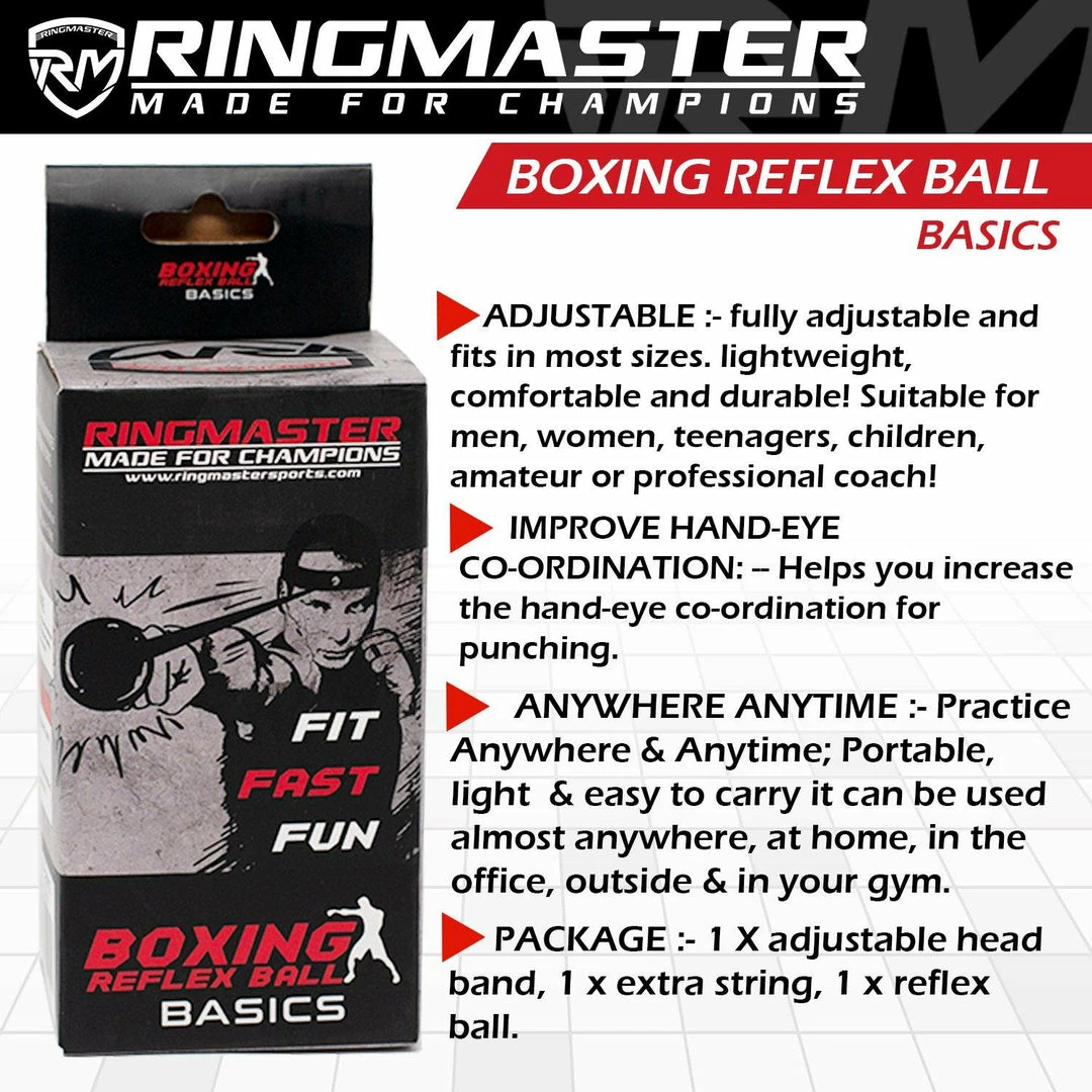 RingMaster Sports Boxing Reflex Ball is a new training equipment, perfect for both amateur and professional fighters to work on their hand eye coordination, attention span and quick reflxes.Â