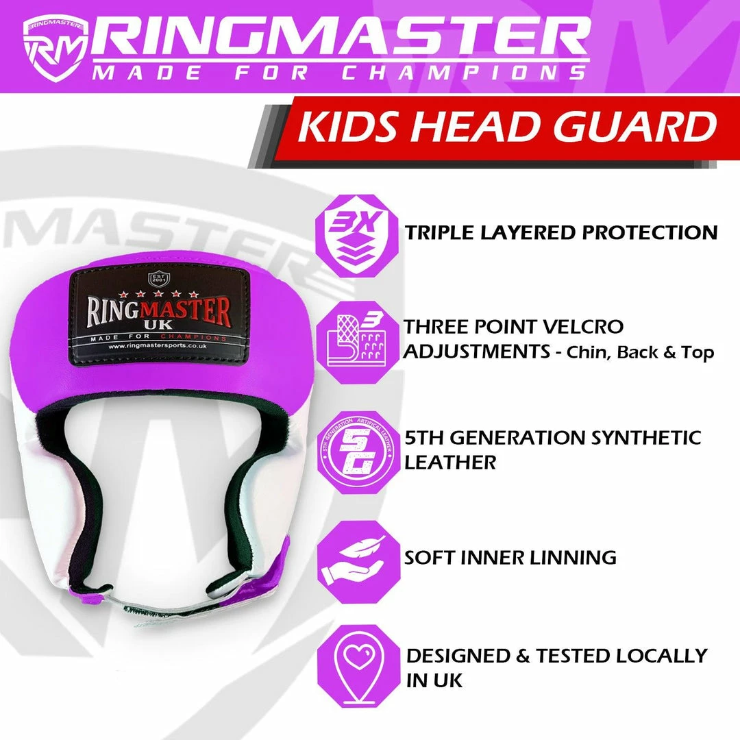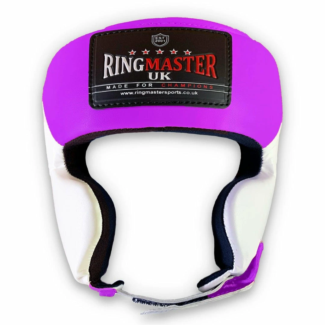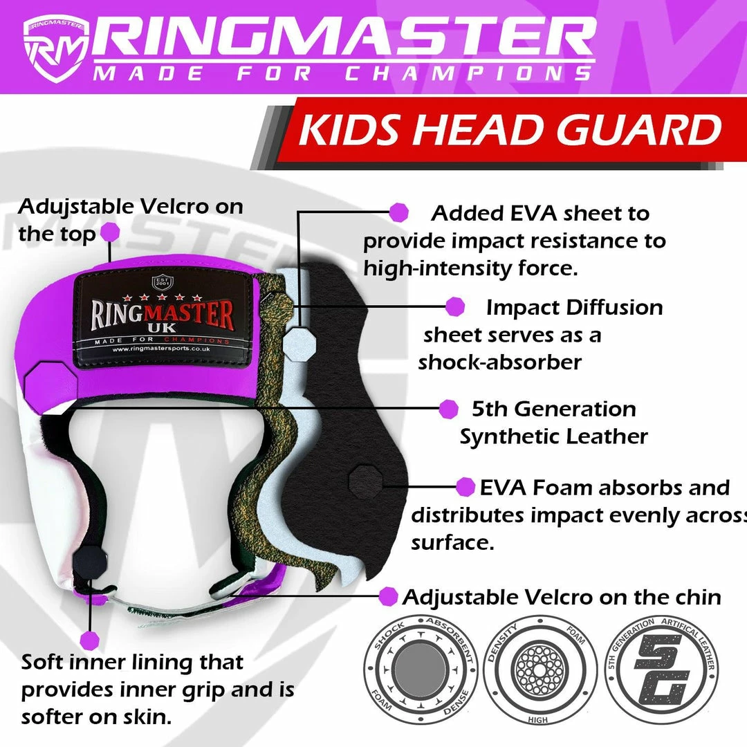 The RingMaster Sports Synthetic Leather Head Guards Black and Red are constructed for high level of safety.