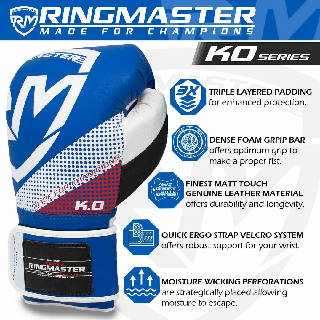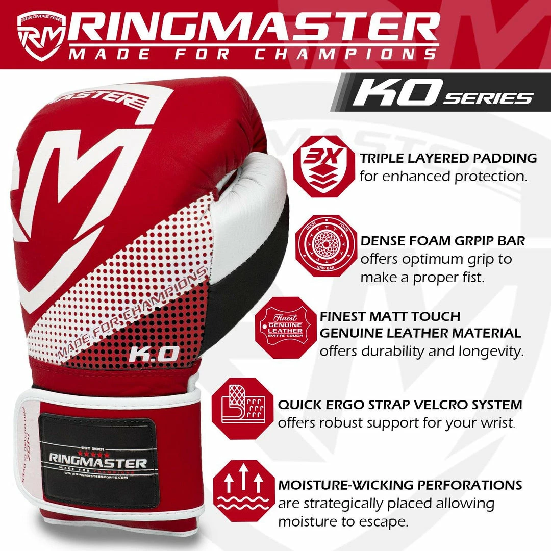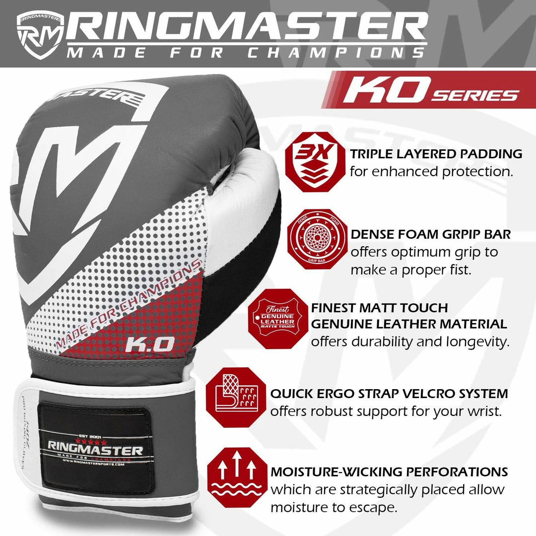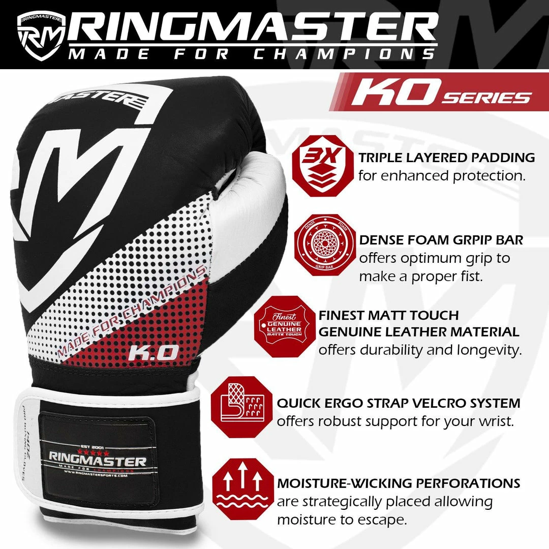 - KO SERIES:Â RingMaster Sports brings the Brand new KO Series Pro Boxing Gloves with improved design for ultimate training performance with maximum protection.Â
