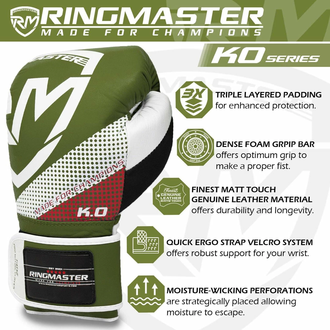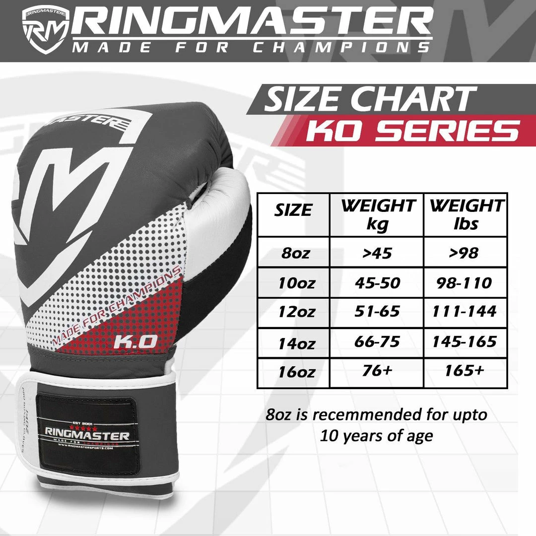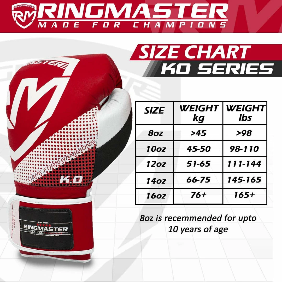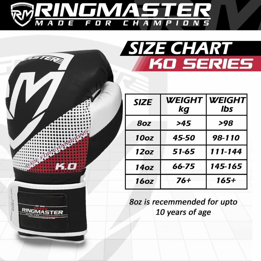 - KO SERIES:Â RingMaster Sports brings the Brand new KO Series Pro Boxing Gloves with improved design for ultimate training performance with maximum protection.Â