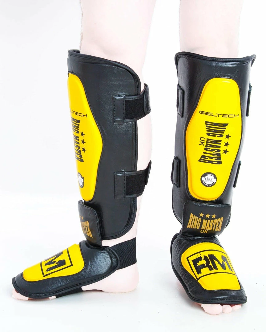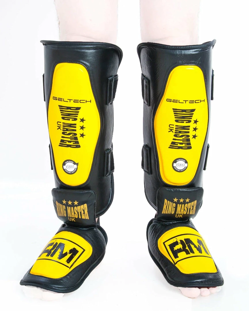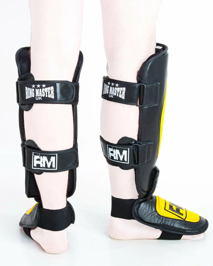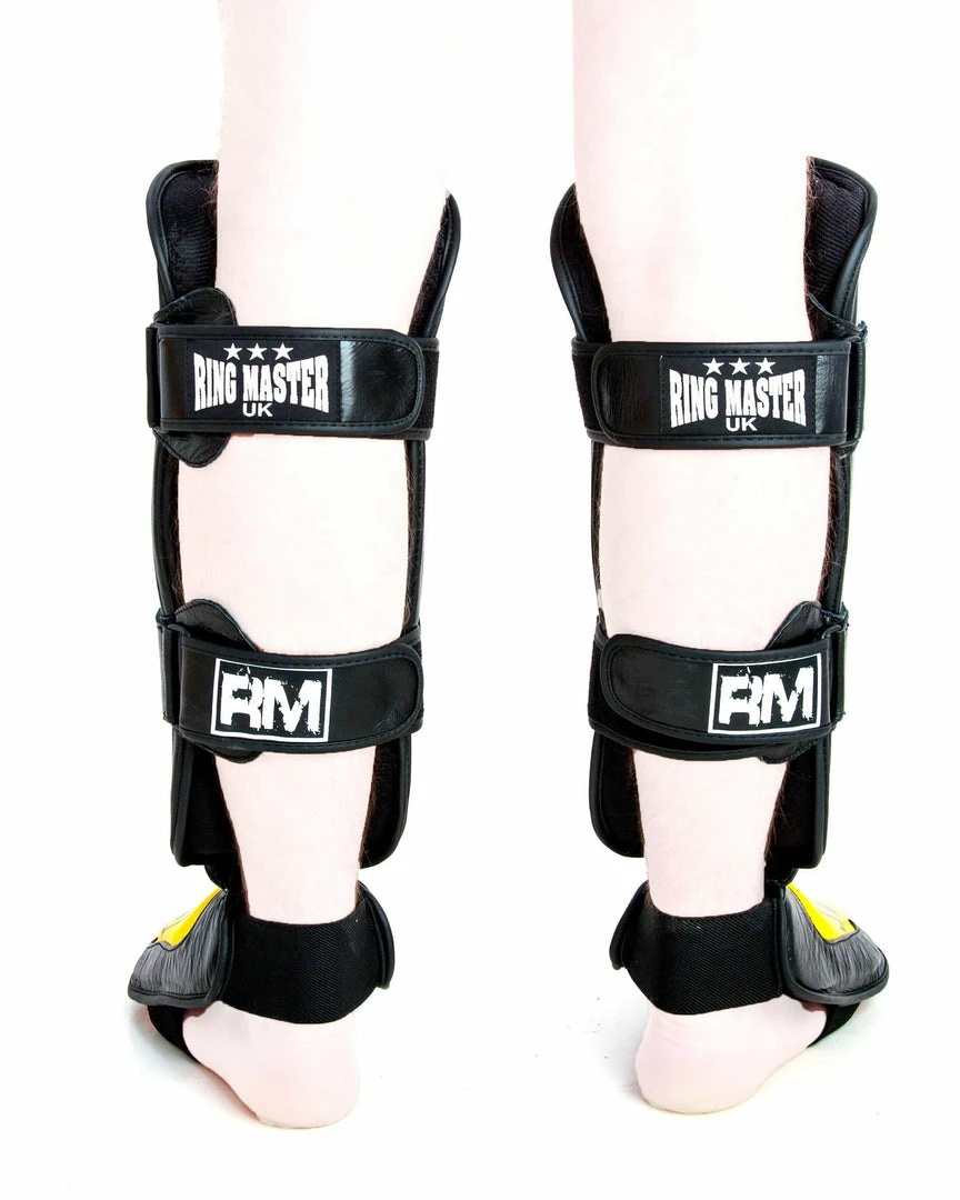 RingMaster Sports RingMaster Shin Instep Guard Genuine Leather Yellow And Black Kickboxing