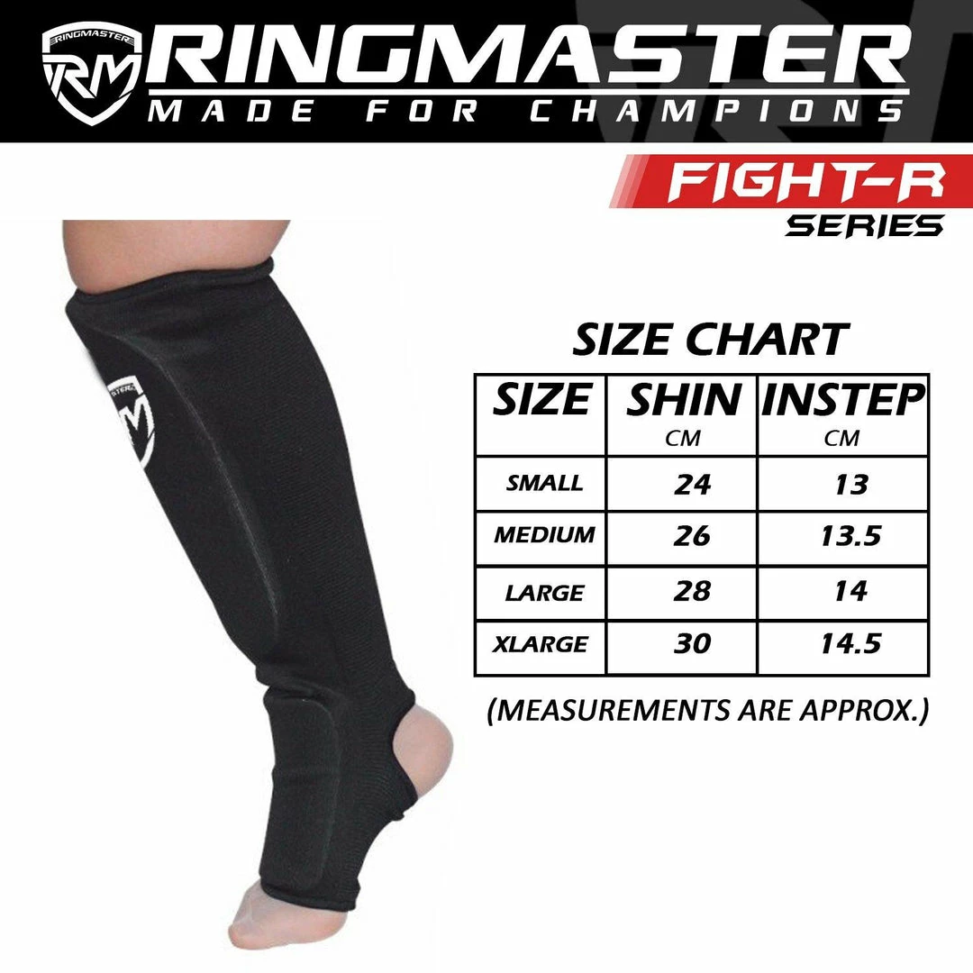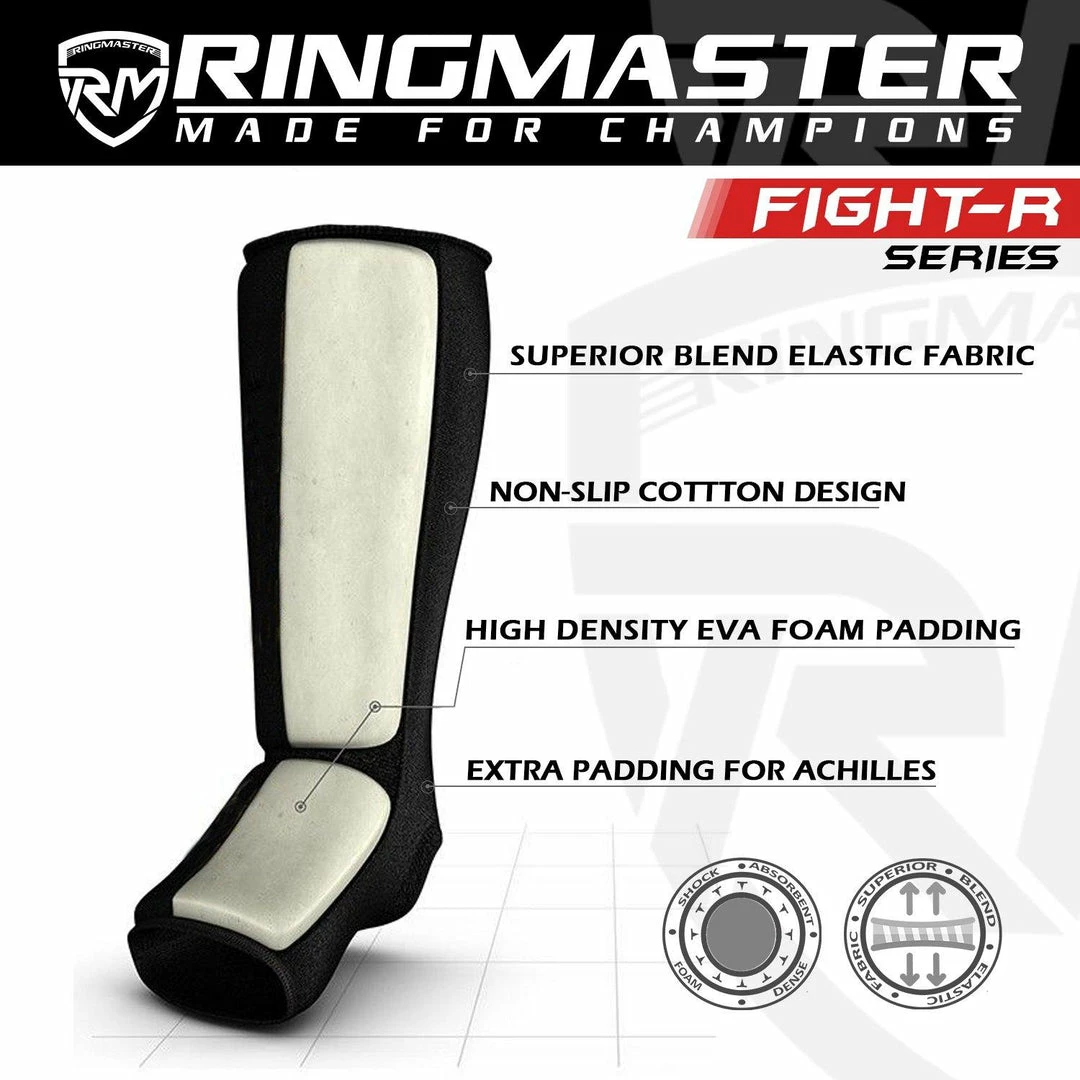 - The RingMaster Sports Fight-R Series shin pads designed to provide ultimate protection and mobility and easy to wear ready to train with in seconds.