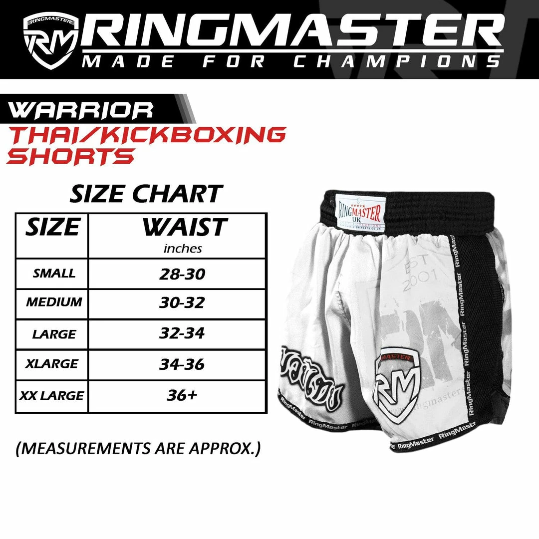RingMaster Sports Warrior Thai / Kickboxing Shorts White